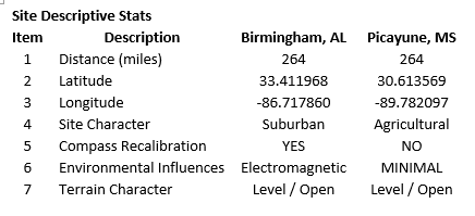 - Test Site A was located in Birmingham, AL; and test site A (a suburban environment) experienced strong magnetic/electromagnetic influences.