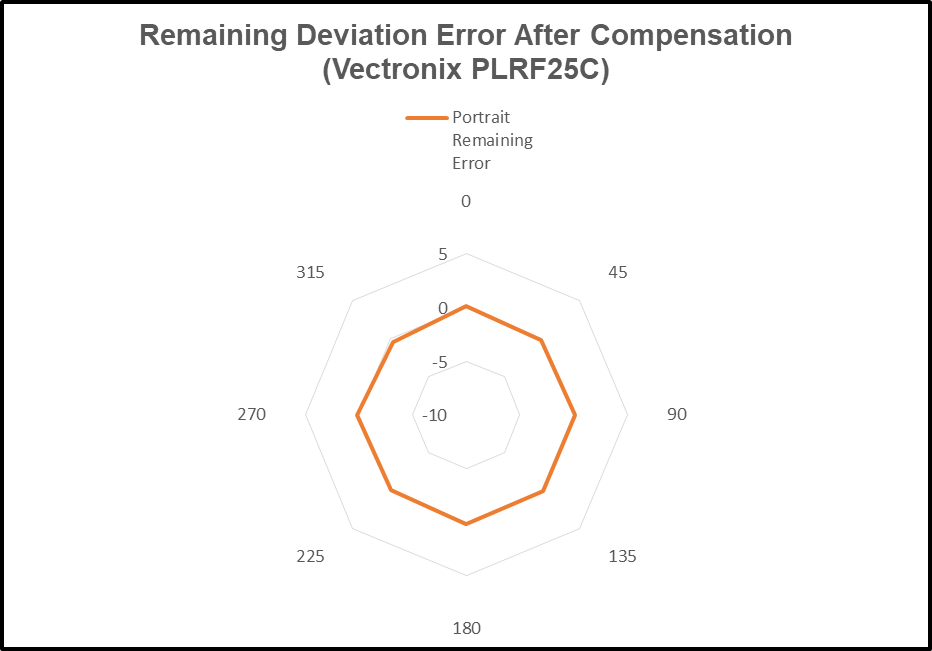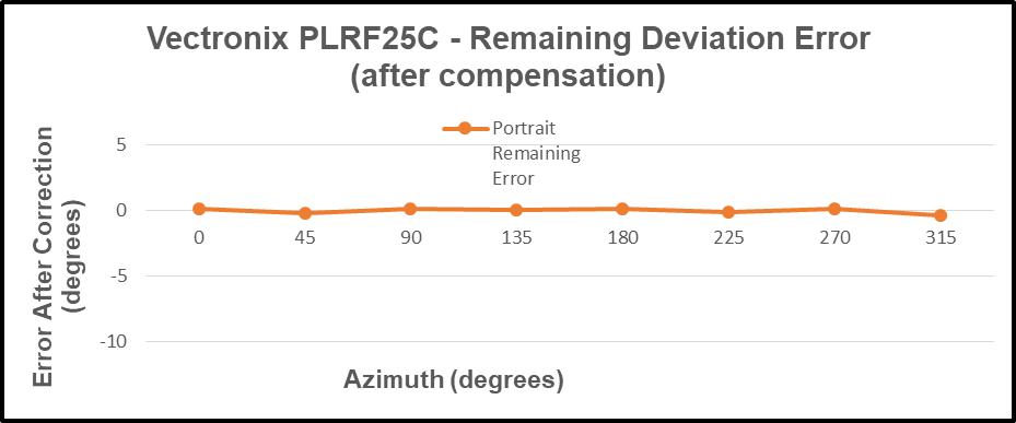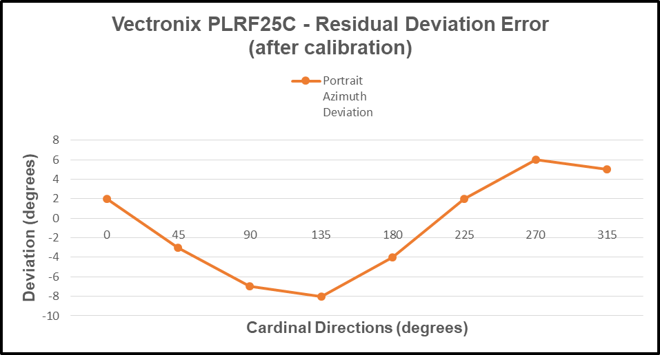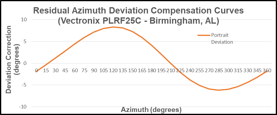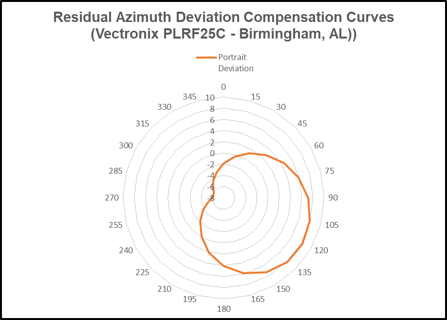 From the preceding data table, the “Portrait Indicated Azimuth” and the “Portrait Azimuth Deviation” columns are charted as follows: Residual Deviation Error.