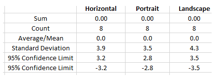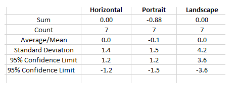 - The relative positions of each (Horizontal, Portrait, and Landscape) curve were relatively consistent.