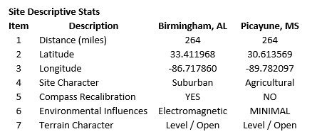 - The Birmingham, AL (2-A) test site is set in an urban environment with strong magnetic/electromagnetic influences including: