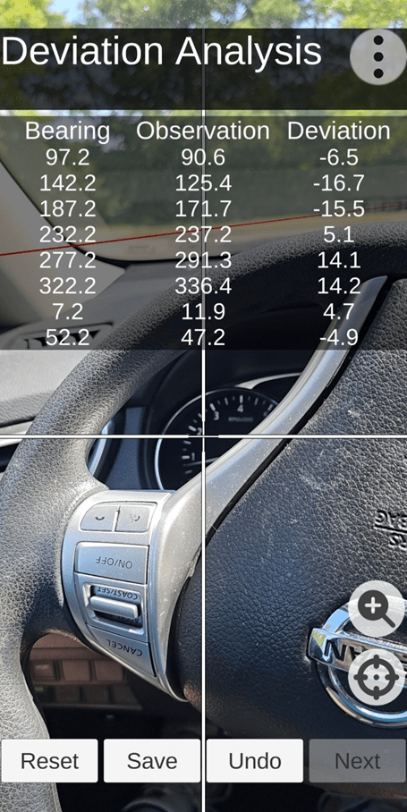 Conclusion: The TruPath Compass’ virtual compass rose (grid & targets) were successfully used to collect the residual azimuth deviation error data inside a car.