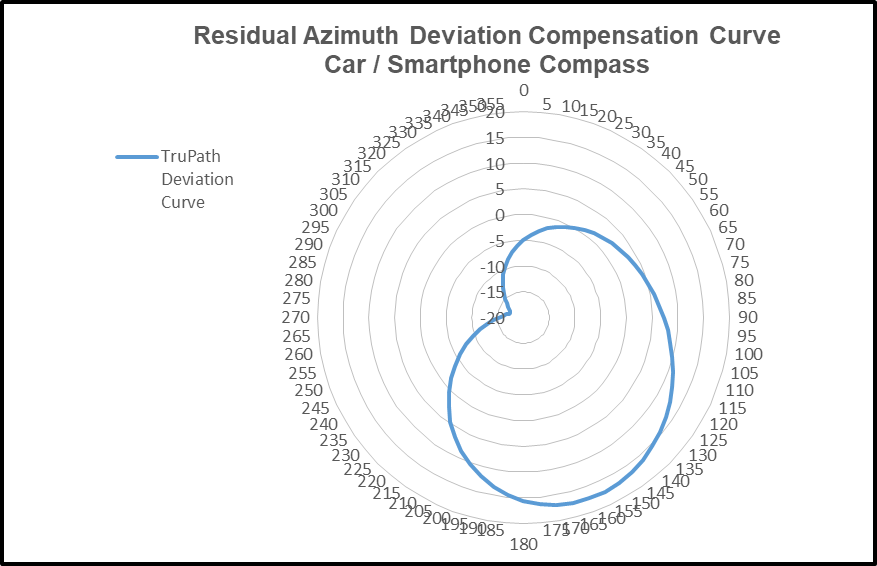 Conclusion: Smartphone compass users [customers] can a) use the TruPath Compass smartphone app to collect residual azimuth deviation [error] data from any electronic compass employed in a wide variety of real-world operating conditions – in a faster, better (easier), and cheaper way – and b) receive the TruPath Compass azimuth error compensation coefficients [correction parameters] immediately – to be shared with the compass app’s vendor [or the user’s own software] to compensate the azimuth errors being encountered locally.