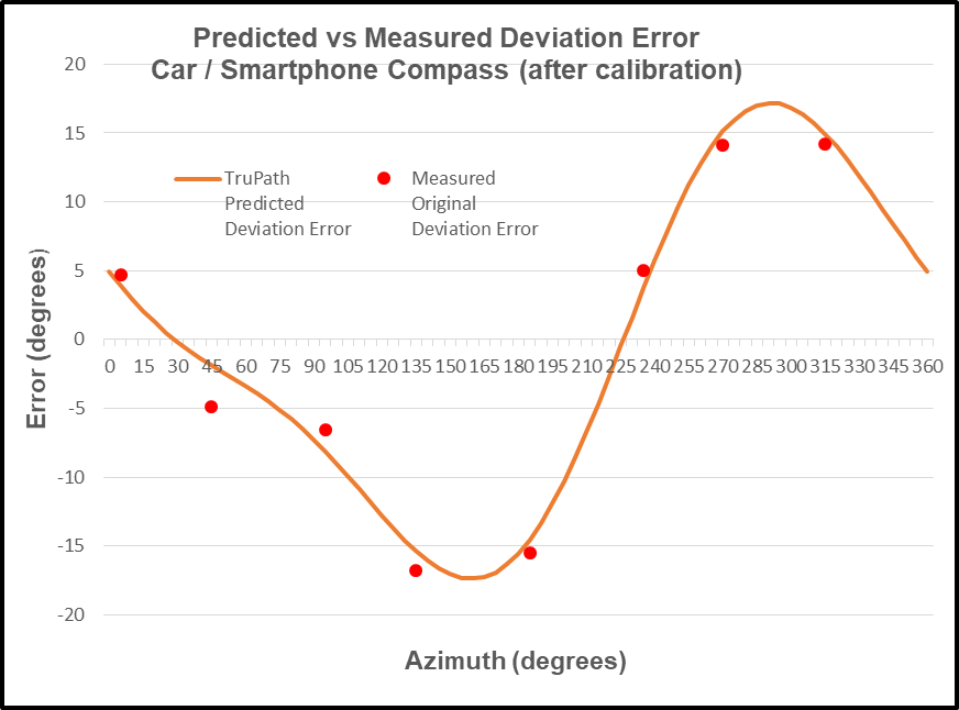 Note: Due to the level of difficulty experienced collecting the original azimuth deviation error data inside the vehicle (confined area), a couple of the measured points exhibit some user error.