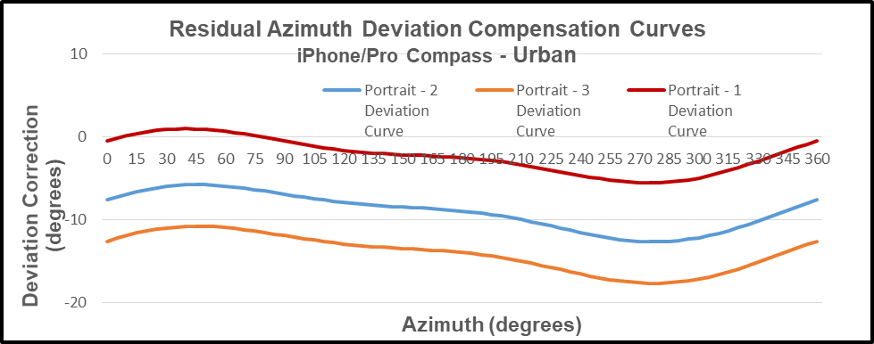 - Analyze the collected deviation data to produce a deviation compensation curve(s) – for the purpose of effectively compensating the residual azimuth deviation error(s) exhibited by the specific electronic compass/compass app.