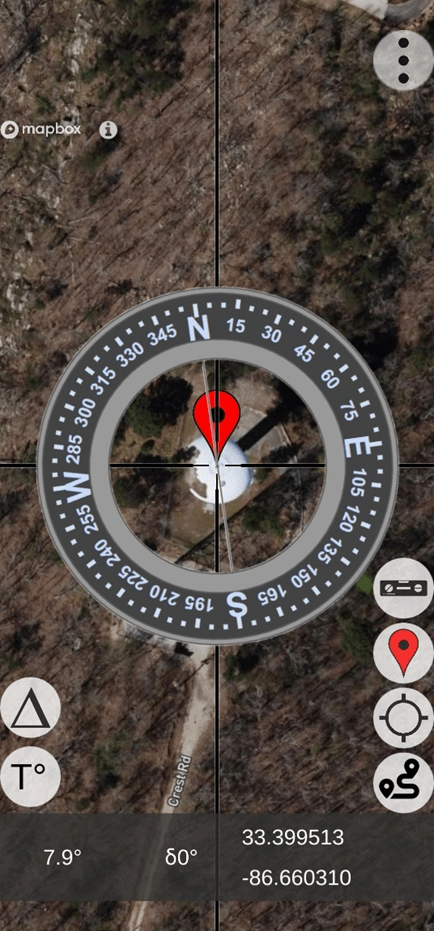 A remote site (free from external magnetic/electromagnetic influences) was located that allowed the identification of a “distant feature” (water tower) at a range quite sufficient to perform an AugView Compass “Deviation Analysis” resulting in a minimum remaining azimuth error.